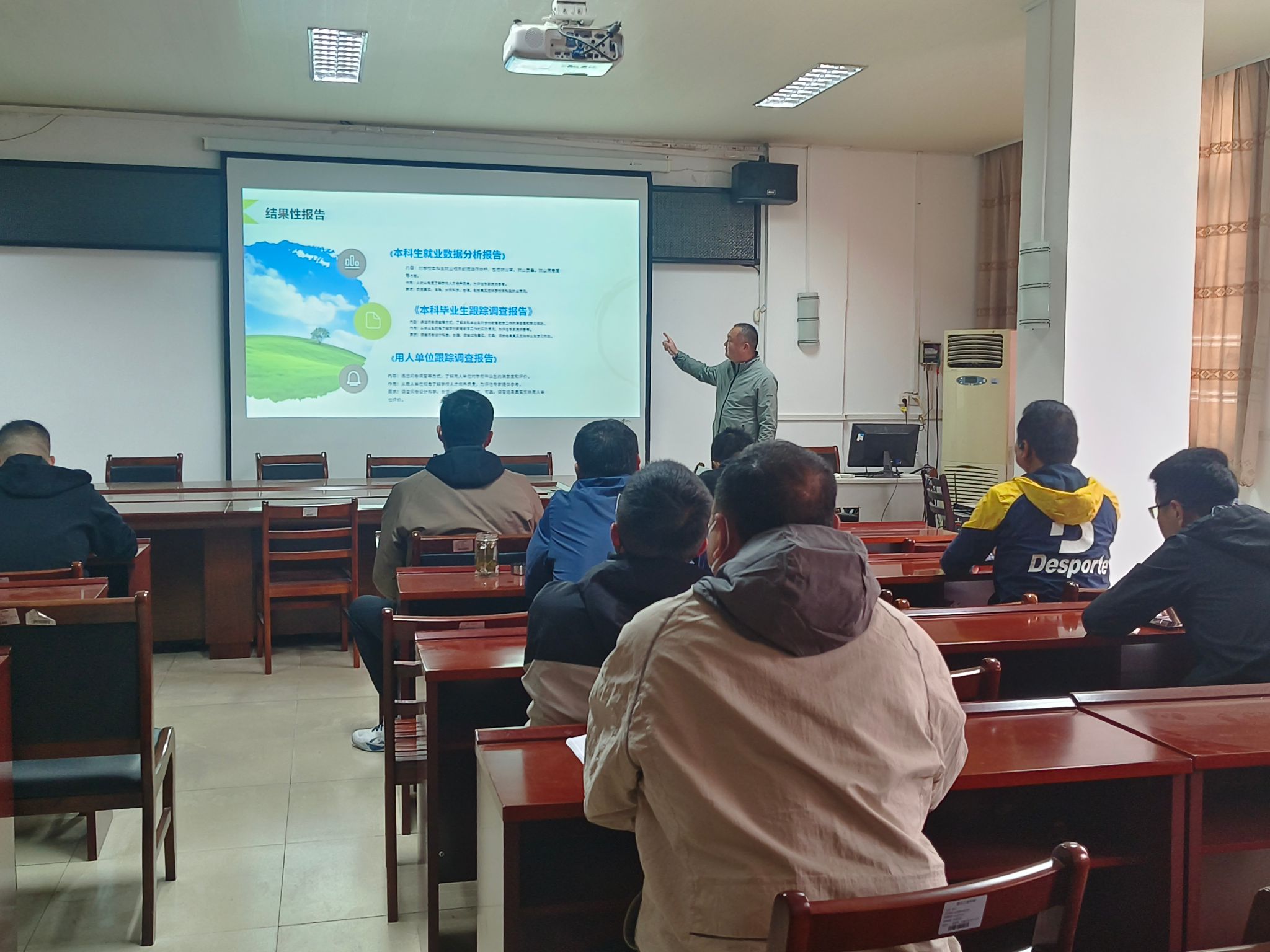 活动由各教研室主任担任主讲。通过多媒体课件与案例解析,系统阐释了"以《自评报告》为主体,以3份过程性报告(《本科教学状态数据分析报告》、《在校生学习体验调查报告》、《教师教学体验调查报告》)和3份结果性报告(《本科生就业数据分析报告》、《本科毕业生跟踪调查报告》、《用人单位跟踪调查报告》)为两翼"的立体化评价体系。特别强调"问题导向"的评估逻辑,通过"评估-反馈-改进"闭环机制推动教学质量螺旋式提升。